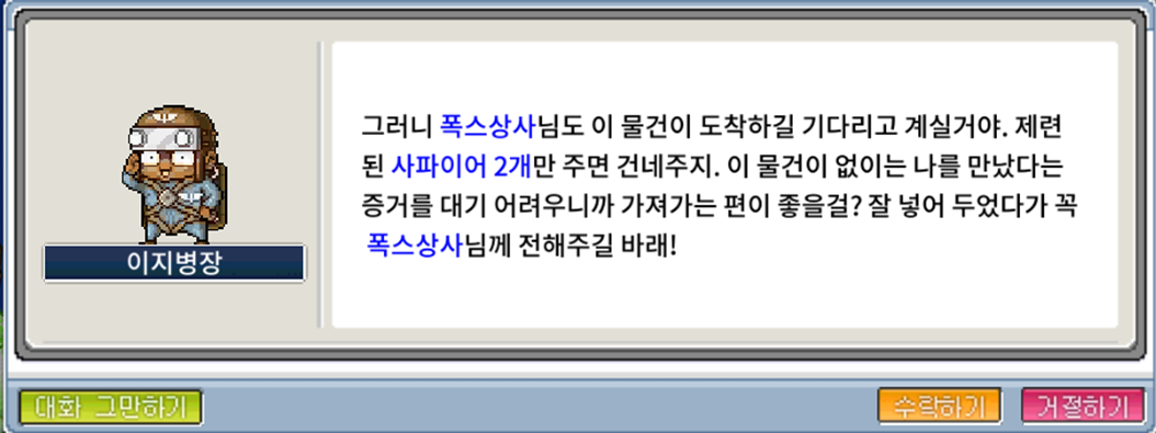 이지병장에게 말을걸면 사파이어 2개를 달라고 합니다.